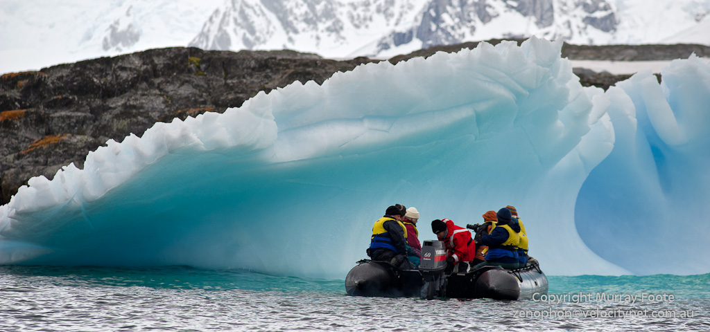 Here we are enroute to the penguin colony, east of Vernadsky Station, though obviously I’m photographing a different zodiac. This shows well the different colours of the ice.