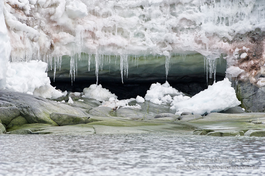 Sea cave under the ice.