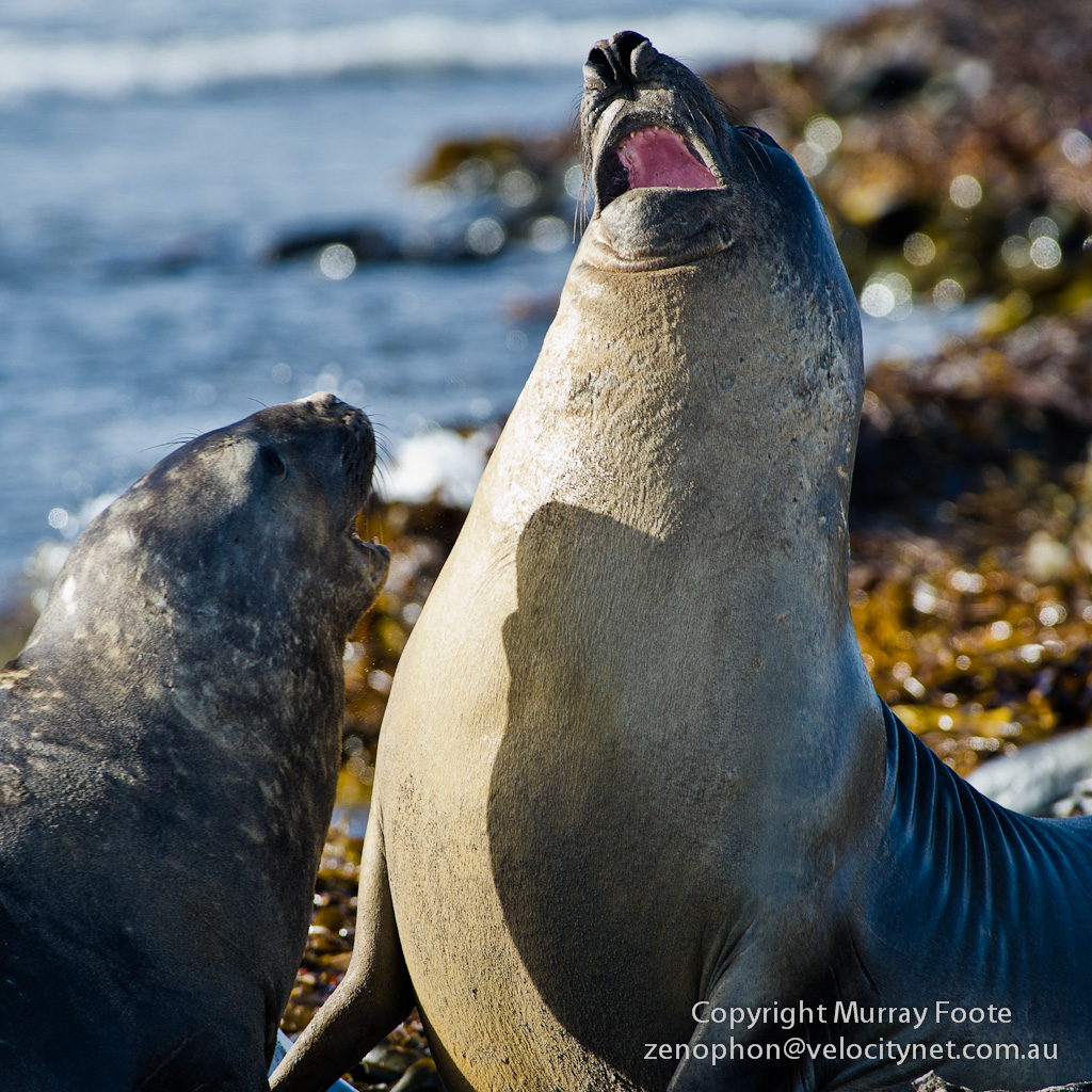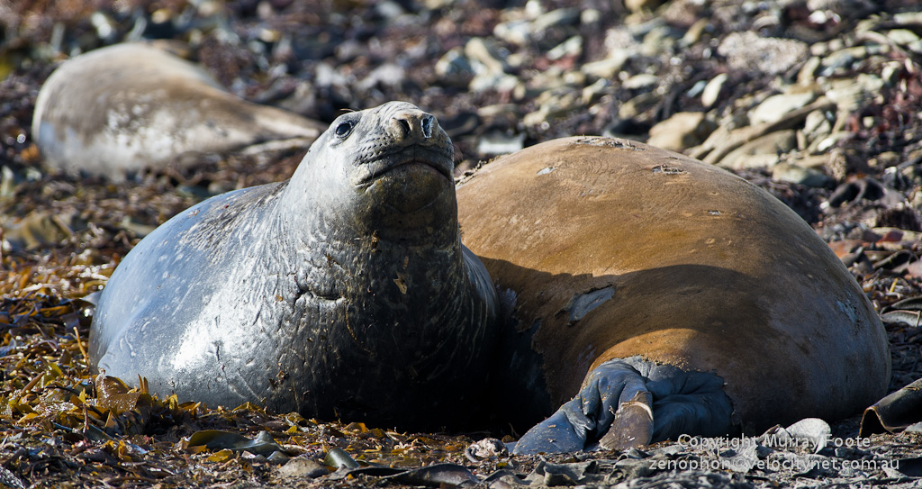 In the afternoon the weather turned fine and we had a delightful visit to Barren Island. There was a group of elephant seals beside the sea, putting on a great show for us – biffo by the beach. In the breeding season, when the beachmasters compete for territory this can be bloody and serious. In this case, though, it was probably mainly the young ones practicing for the time they may need to do it for real. They also made prolonged burping sounds at very high volume as though they were practicing for potential roles as lead singers in death metal bands.