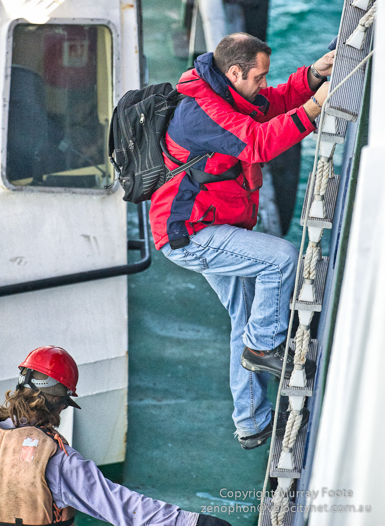 On the right is the pilot, disembarking back off the side of the ship onto a tugboat in the open sea. The sea was very calm at this time but I imagine it could be quite a tricky operation in a rough sea.