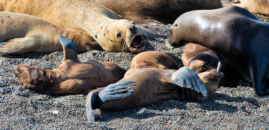 Further on from the carpark, near the edge of the water, there were several colonies of sea lions, all females and pups.