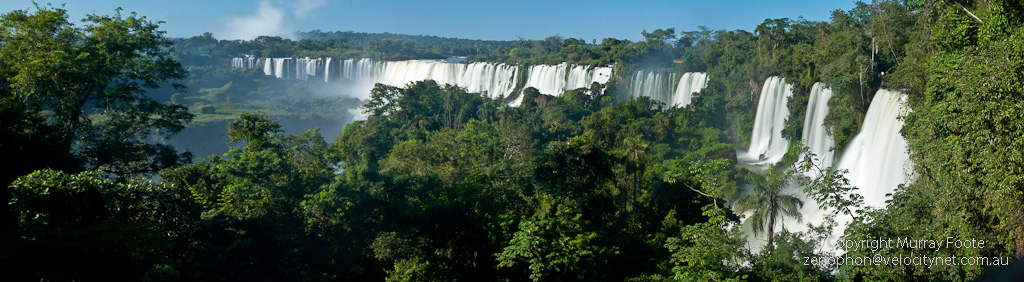Iguazu Falls is very wide, as you can see from the image below. Actually, this is not all of it; what looks like a cloud in the distance is spray from another section around the corner.