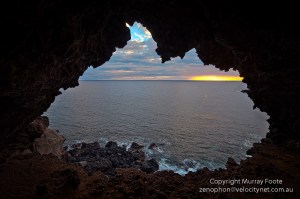 This is the other opening in the cliff face over the sea. I was set up and starting to take photographs when suddenly the sun came out streaming across the sea. This only lasted about 20 seconds. A serendipitous moment.