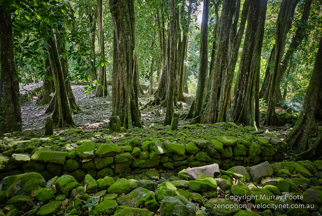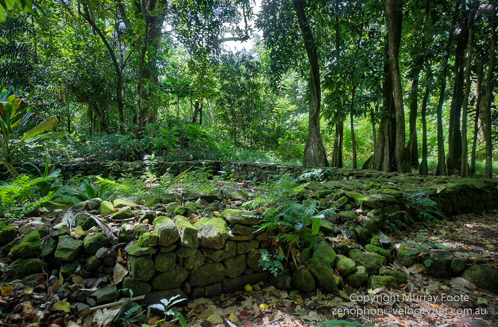 Nowadays in Tahiti and Moorea everyone lives on the coastal strip. In the old days, there was a great population living in the inland valleys. About 500 ancient structures have been identified in the Opunohu Valley on Moorea though not many are visible as the tropical forest quickly swallows most of them up.