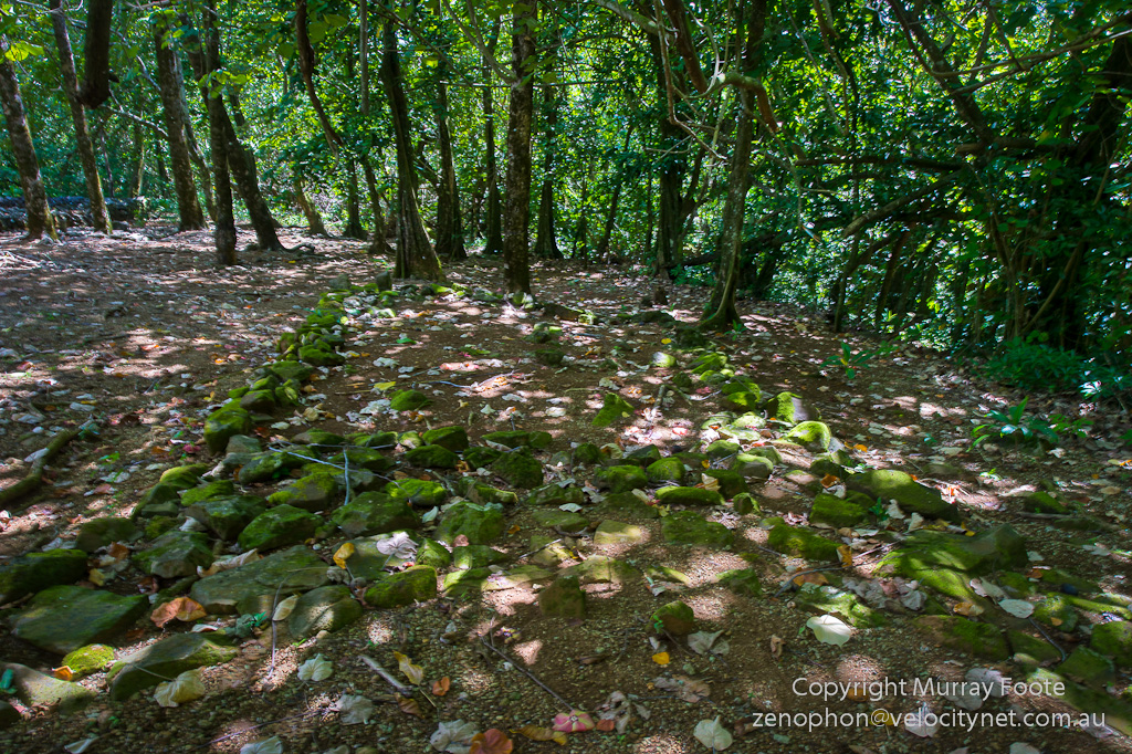It may be difficult to see in the image above, especially in the unfavourable midday light, but you may be able to make out a crescent of green stones in the foreground and a square behind it. This is the remains of an archery platform, a contest between male ari’i or ra’atira (chiefs), testing strength rather than accuracy. The archer kneeled in the centre of the stone crescent, facing past where this camera would be centuries later. The vegetation was cleared for 300 metres (which in itself boggles the mind) and they shot up the hill. Observers stationed on the hill waved back with flags to indicate how far the arrows went and competitors were eliminated if they did not achieve a minimum distance.