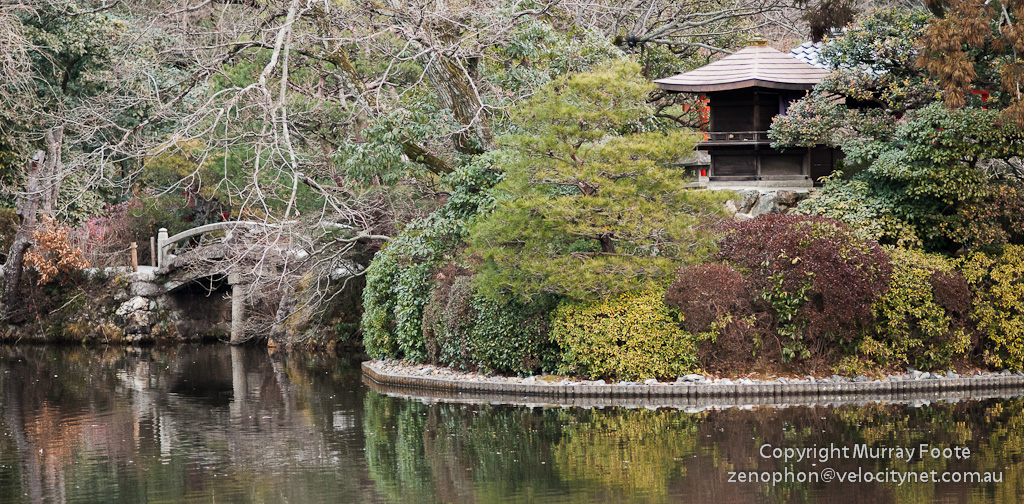 Returning from the rock garden, here we are again at the lower pond and garden. I presume the building is part of the Shinto shrine (access was not possible).