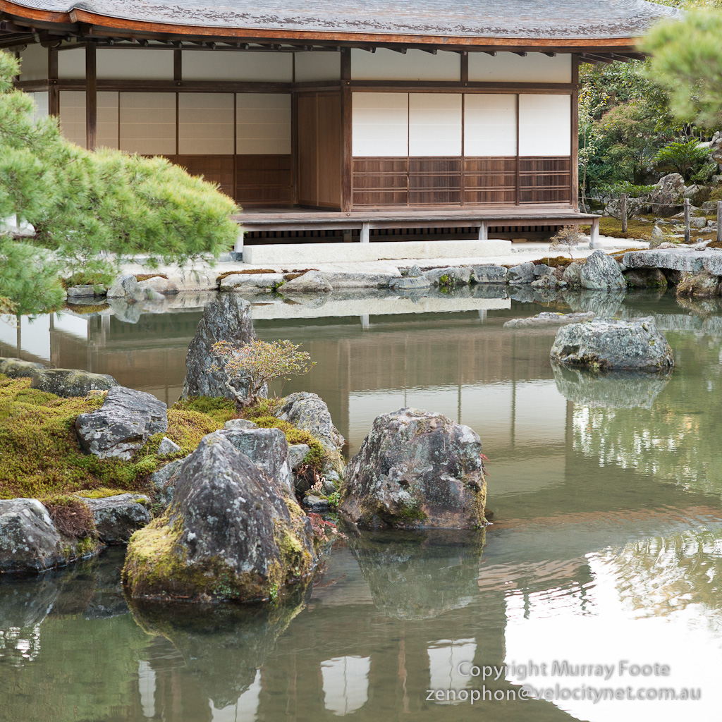 Many of the elements in the view from the image above date back to the time of original construction by Ashikaga Yoshimasa. The Silver Pavilion itself never burned down though most of the other original buildings do not survive.
