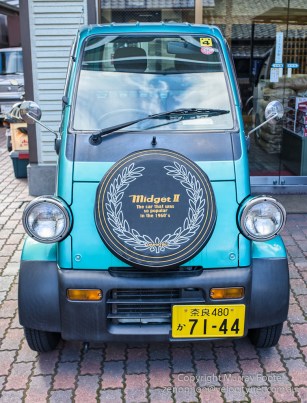 I couldn’t resist photographing this vehicle near where I was staying which is actually a utility or ute (it has a tray at the back).   The spare wheel cover refers to a car called a Midget that was popular in the 1960s yet it is clearly not the MG Midget, one of which I drove for sixteen years, until relatively recently.  It does, though demonstrate the prominence of small vehicles in Japan, where parking space is very much at a premium in many urban areas.