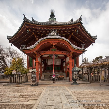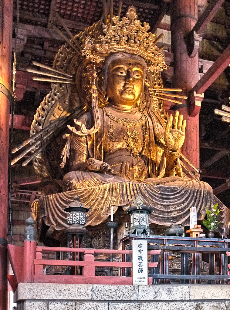 This is Nanendo, the South Octagonal Hall, originally built in 813 though the current building is a reconstruction from 1741.  It is primarily dedicated to Fukukensaku Kannon, the bosatsu of the “Unfailing Fishing Line”, who uses a metaphysical fishing line to catch and assist people who are suffering.  A bosatsu or bodhisattva is said to be an individual who attains a buddha-like state that they dedicate to the benefit of all humanity.