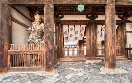 This is the Chu-mon or middle gate, showing one of its guardians, and dating back as early as 607AD.