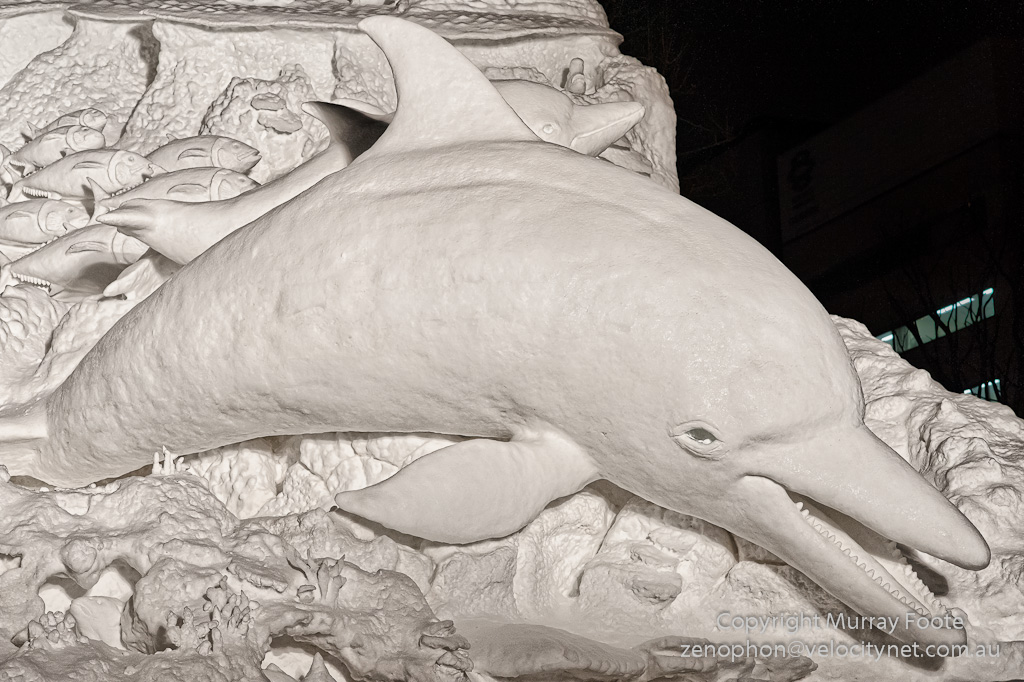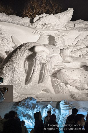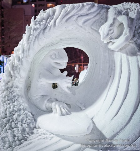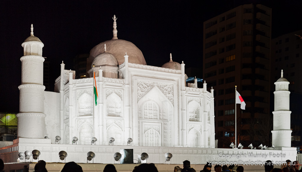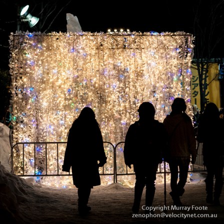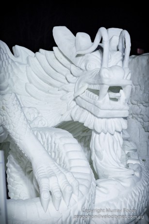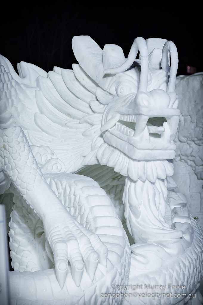 After dinner and when it was dark, I returned to visit the snow sculptures at night.