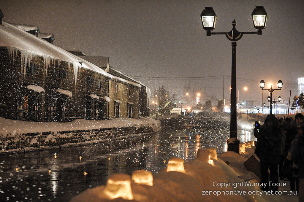 We’d been wandering round Otaru most of the day and I had it in mind to visit the canal which I had heard was lined with picturesque nineteenth century stone warehouses. We arrived just after dark and, fortuitously, discovered that this was where the Lantern Festival was.