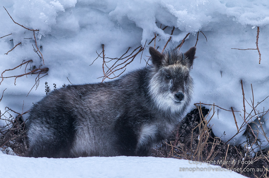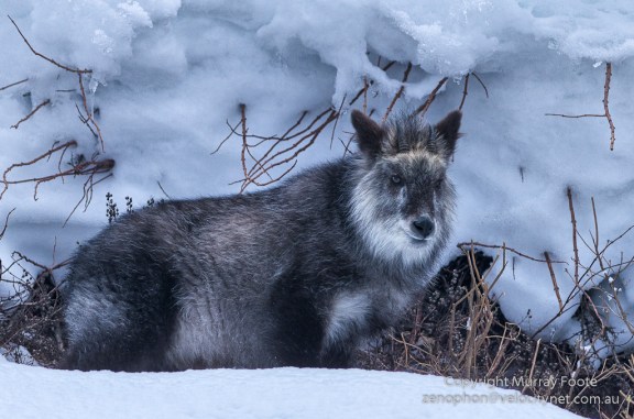 It is a Japanese serow and the Japanese call it a Nihon kamoshika. It is said to be a goat-antelope but this is a vague and misleading term so I’ll explain further using Latin names. It is a member of the family bovidai which includes cattle, sheep, goats and antelopes. Antelope, though, is more a residual term than an accurate description.