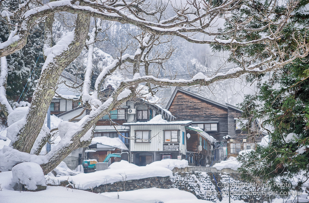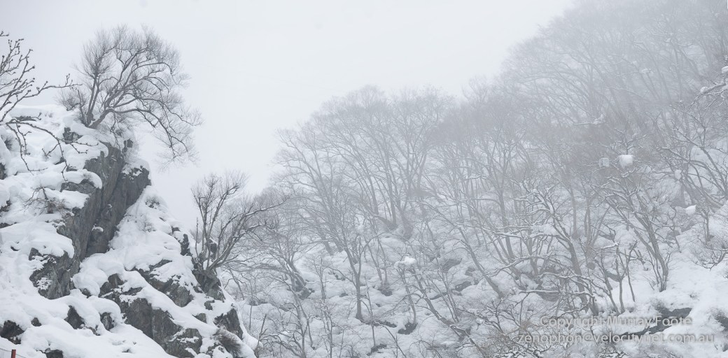 I think most of the others in the group were photographing the macaques in the pool at this time but I was transfixed by the mystical landscape as the snow and fog rolled in.