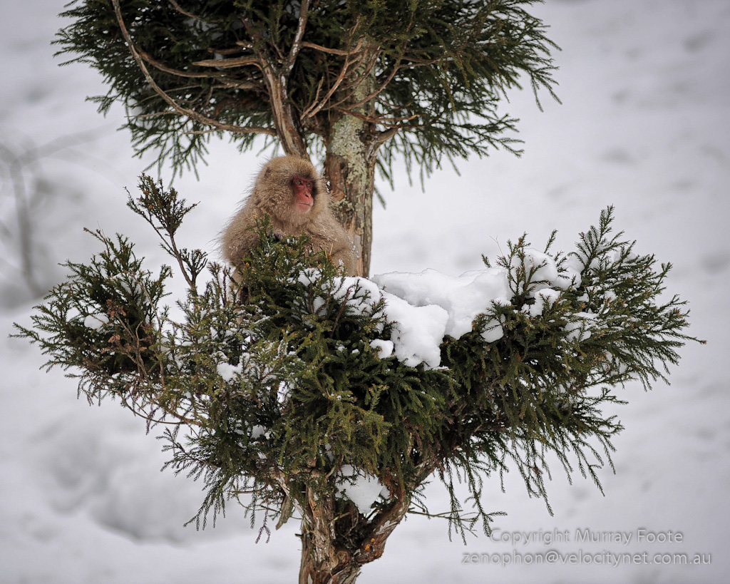 Unsurprisingly, Japanese macaques climb trees. They commonly sleep in trees. In part in winter this is to avoid small avalanches that might fall out of the trees while they are asleep. It is probably also for protection from predators. They would be safe from wild dogs while mountain hawk eagles are diurnal so wouldn’t attack them at night. If raccoon dogs are also their predators, they might not be entirely safe from them because although they are a dog (and not a raccoon), they have long claws and can climb trees.