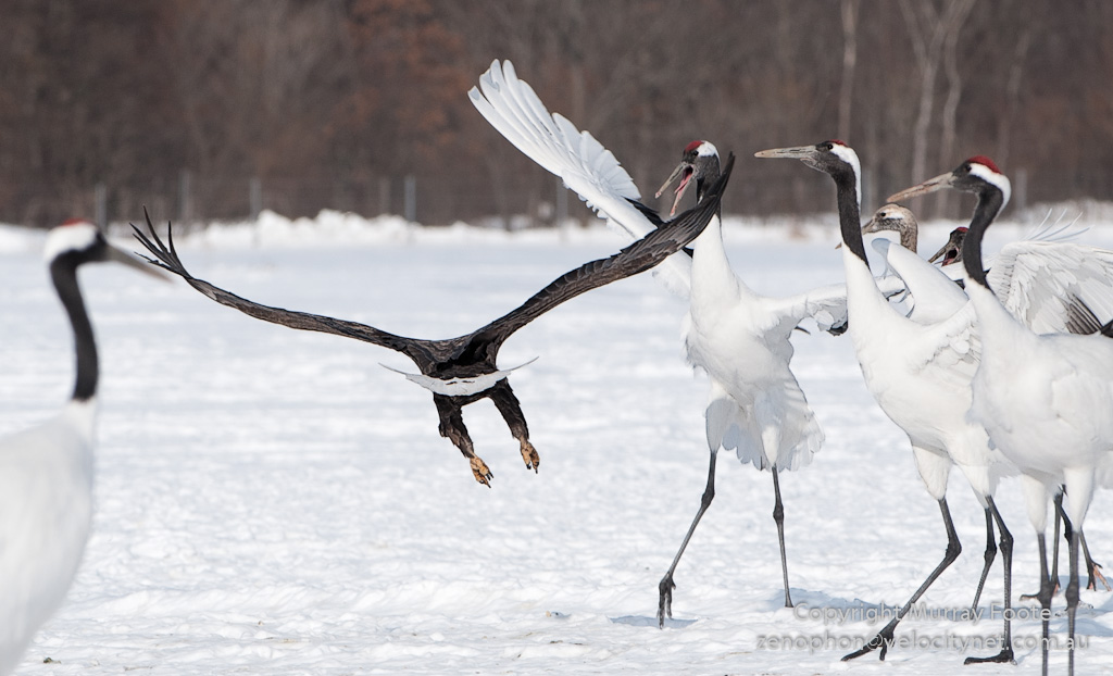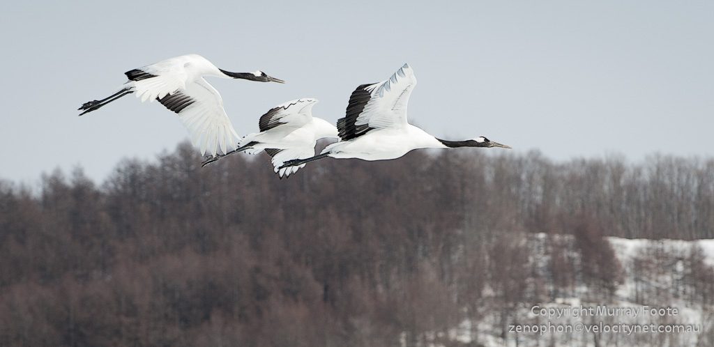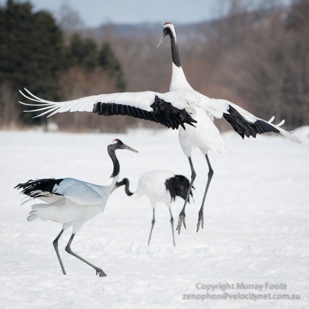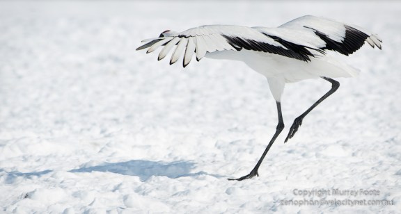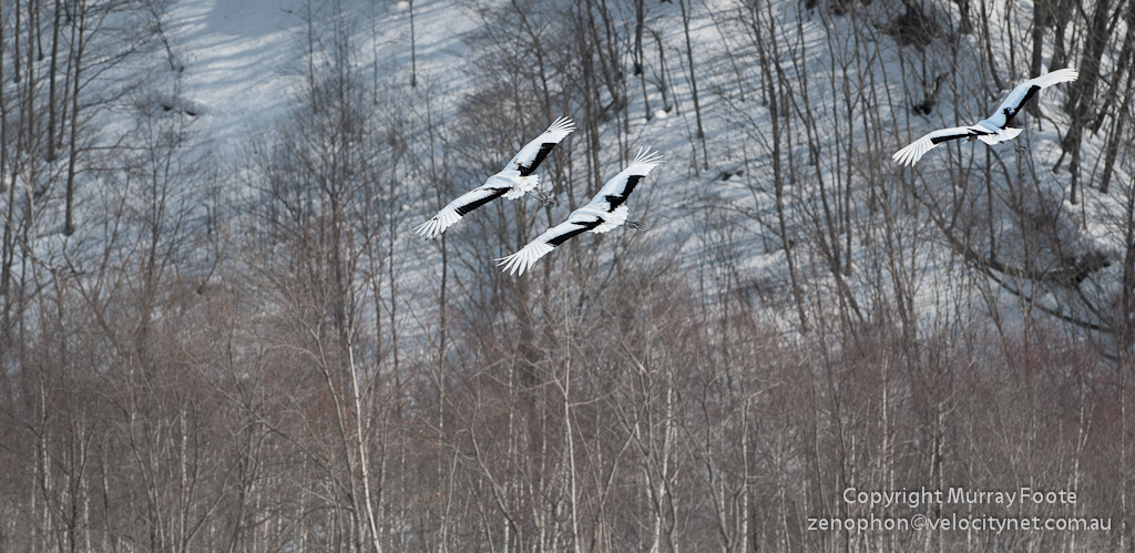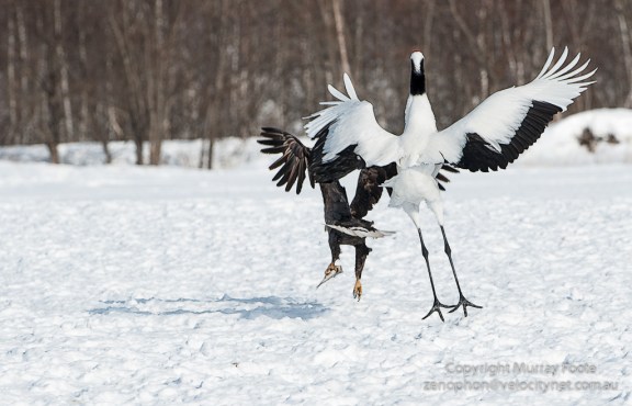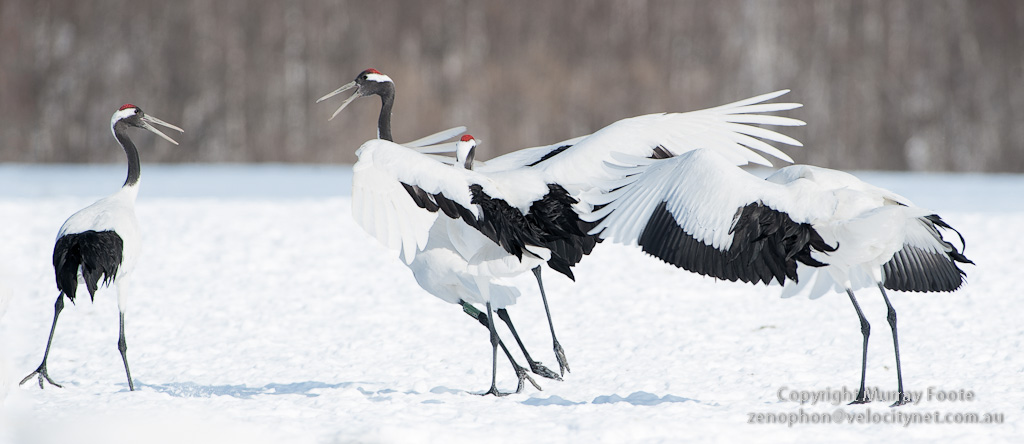 We arrived in late winter, which is when the cranes undertake mating displays in preparation for the spring, as you see here. The cranes form lifelong pair-bonds.