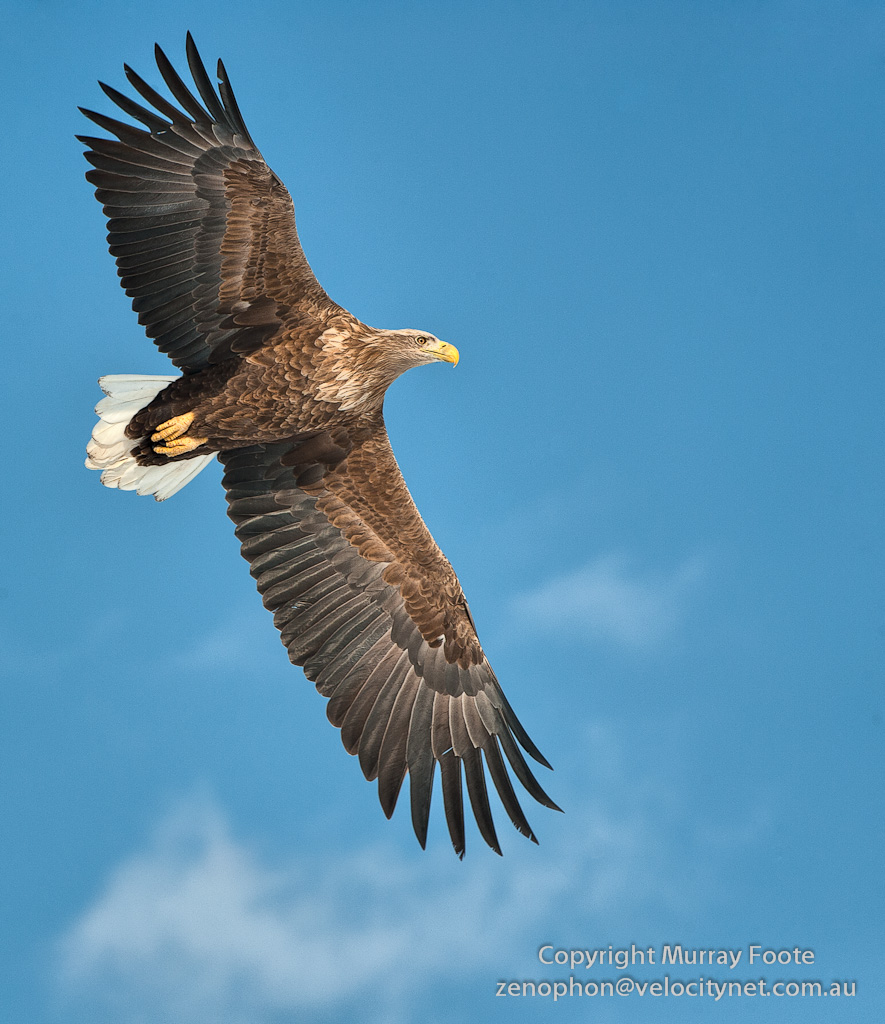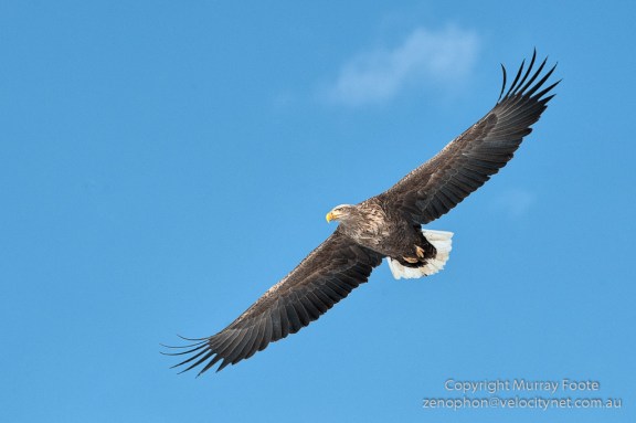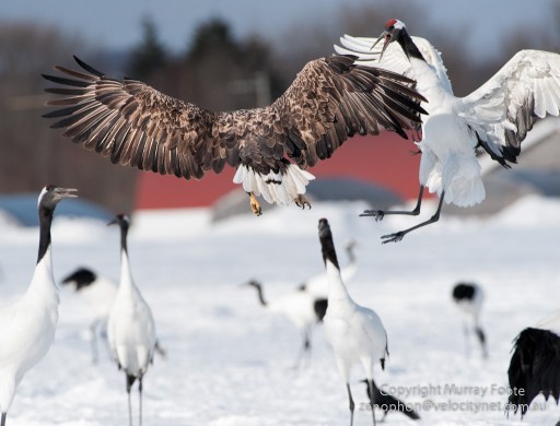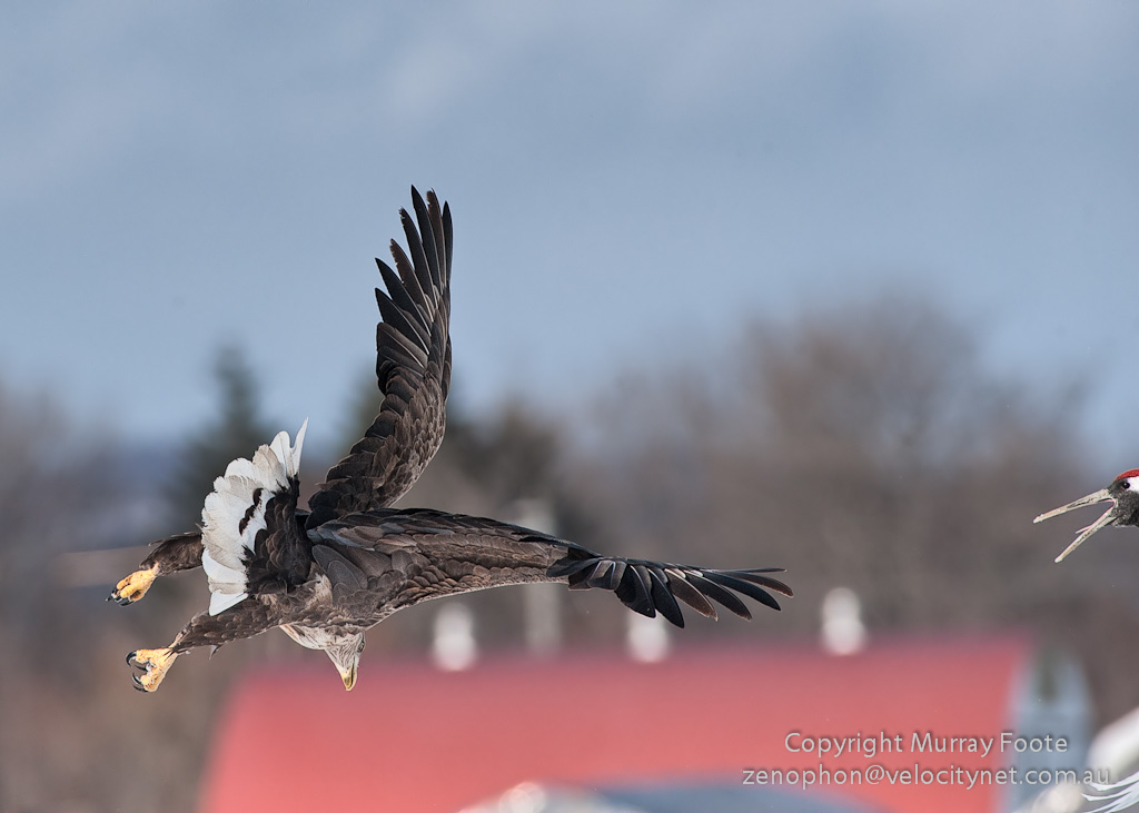 The Crane Centre feeds the cranes fish at around three in the afternoon. White-tailed sea eagles have not failed to notice this and turn up for a free meal at the appropriate time. These eagles range widely through Europe and many parts of Asia and the world-wide population is about 10,000.