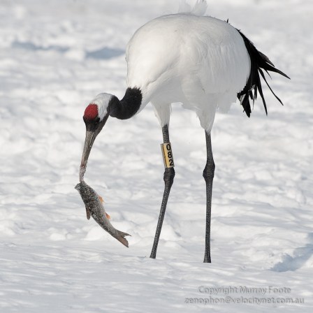 Red crowned cranes are both the largest and amongst the rarest cranes in the world. They stand up to five feet tall (1.5 metres). There are two populations, East Asian and Japanese. The East Asian cranes migrate annually between Siberia or Mongolia and North Korea or Eastern China; the Japanese cranes remain resident in Hokkaido. They are Japan’s most sacred bird.