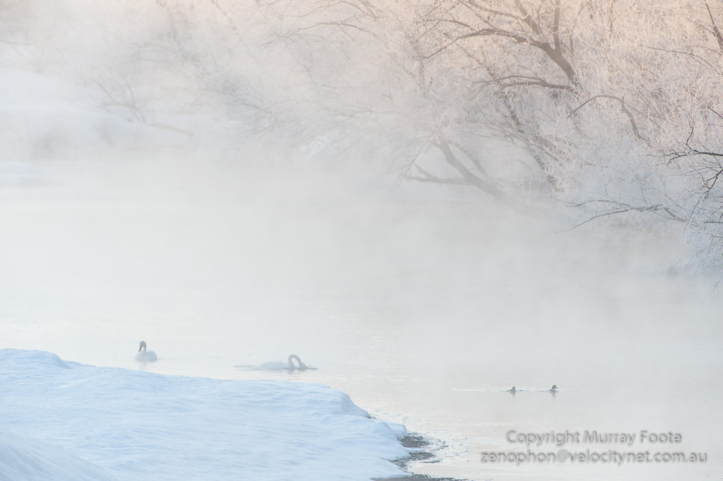 Because the air temperature was lower than the dew point, the air was unable to absorb water vapour, which formed as fog over the water. So we got nice foggy effects but because it was so cold, the birds weren’t moving much.
