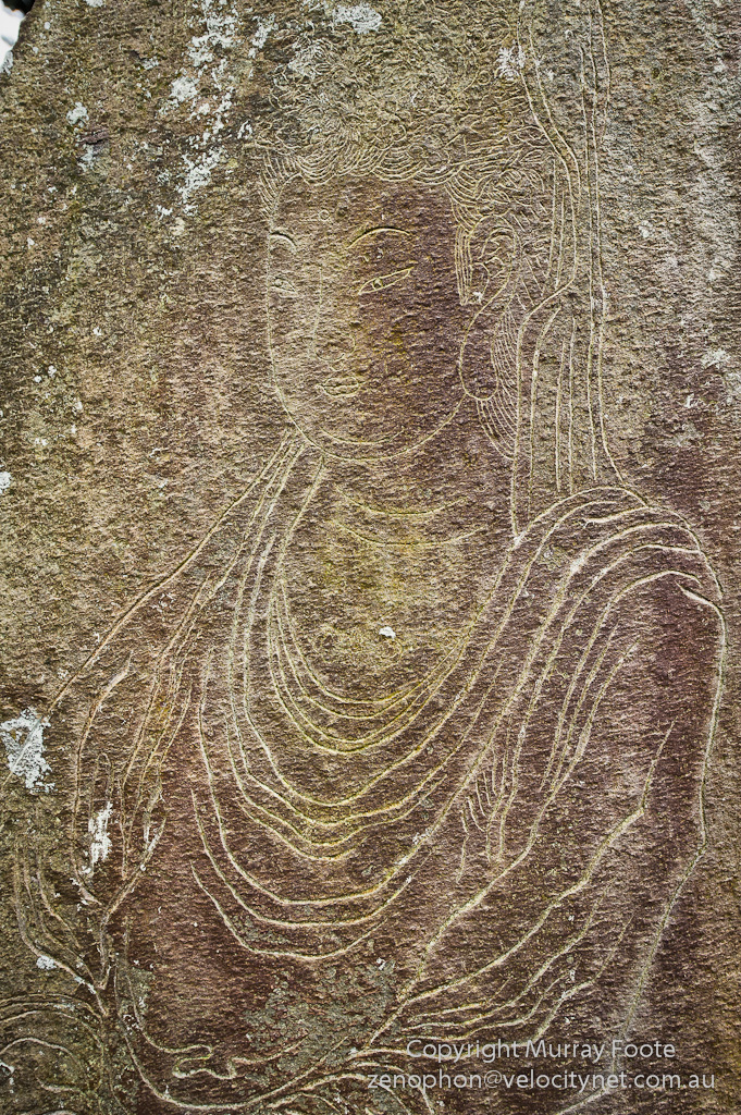 There are many statues and engravings of Kannon, the Goddess of Mercy, in the courtyard of the Dai-Hojo. Any of the images will look better if you click on them to see them larger on a dark background but that particularly applies to the two engravings above.