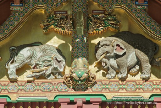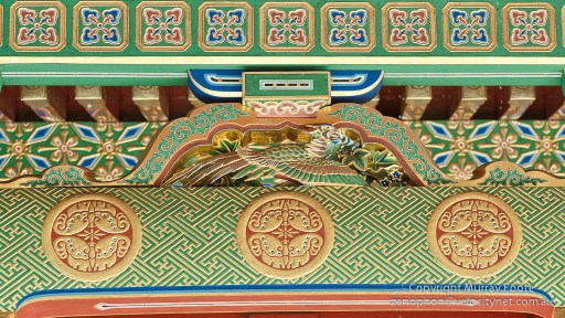 These are some of the painted carvings on the Yomeimon Gate, that you may be able to see in context if you look closely at the previous image of that gate.