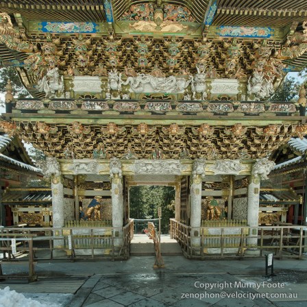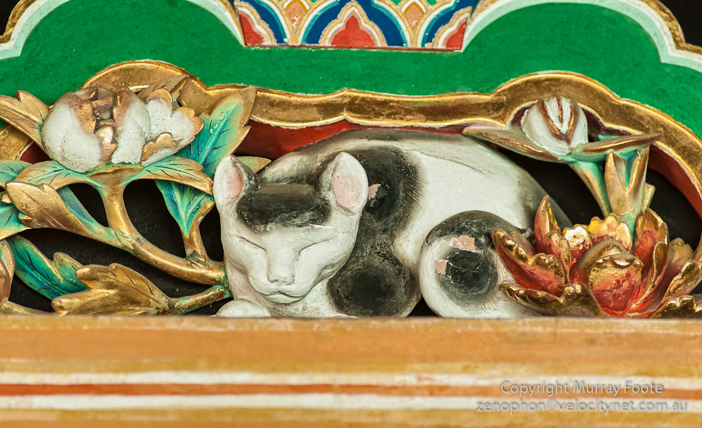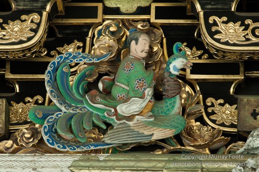 Not far from Taiyuin-byo is Tosho-gu. This is the shrine of Tokugawa Ieyasu, the first Tokugawa shogun. It was greatly expanded from the “small shrine” he requested to the grand complex you see today by his grandson Iemitsu. The first two images (above) are painted carvings from below the roof of one of the Sacred Store-Houses.