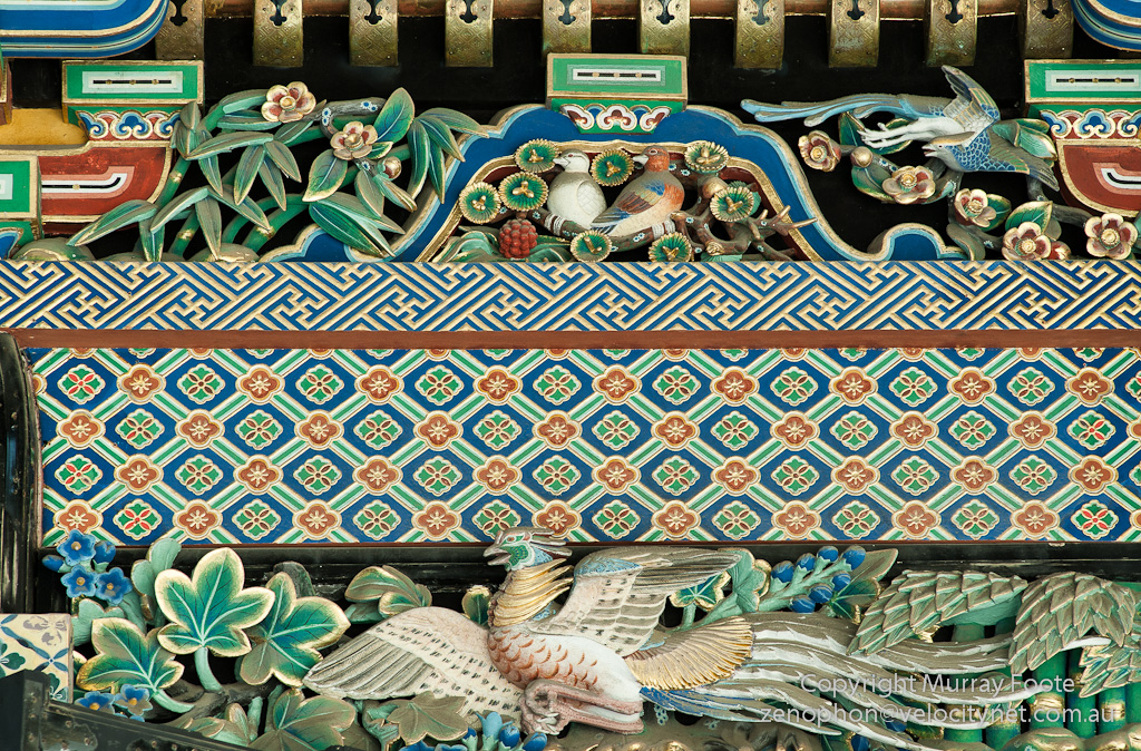 These are some of the painted carvings on the Yomeimon Gate, that you may be able to see in context if you look closely at the previous image of that gate.