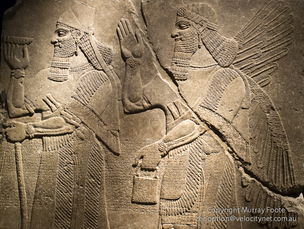 Note too that they wear wrist watches on both wrists and in this case, around the head as well. Perhaps the Assyrians were forbears of the Swiss.