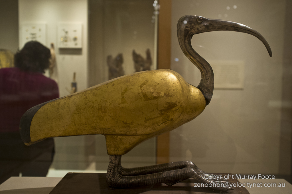 This ibis funerary urn is in gold leaf and silver and dates to 332-330BC, which places it at the beginning of the Macedonian period (just after the time of Alexander the Great).