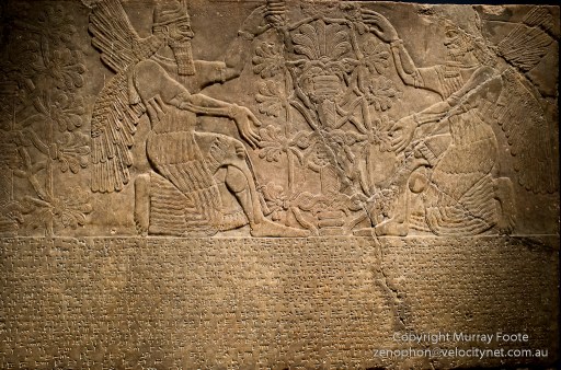 Another feature is the way they are often holding something that looks like a pine cone as though they are about to pop it in a post box. There also appears to be a book written across each of the reliefs in cuneiform, probably dynastic propaganda.