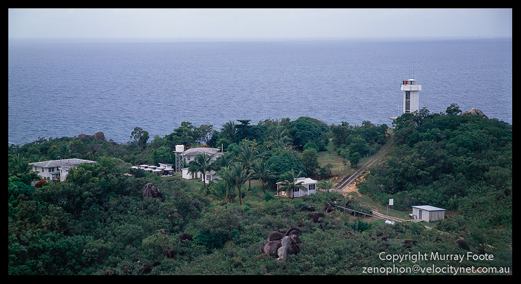Fitzroy Island is off the coast of northern Queensland, just south of Cairns. Here we have the usual assemblage of keepers’ quarters and other buildings along with the lighthouse. Lighthouse buildings built further south in the nineteenth century would be of stone but here I think the houses appear to be wood and the sheds fibro (asbestos sheeting) or corrugated iron.