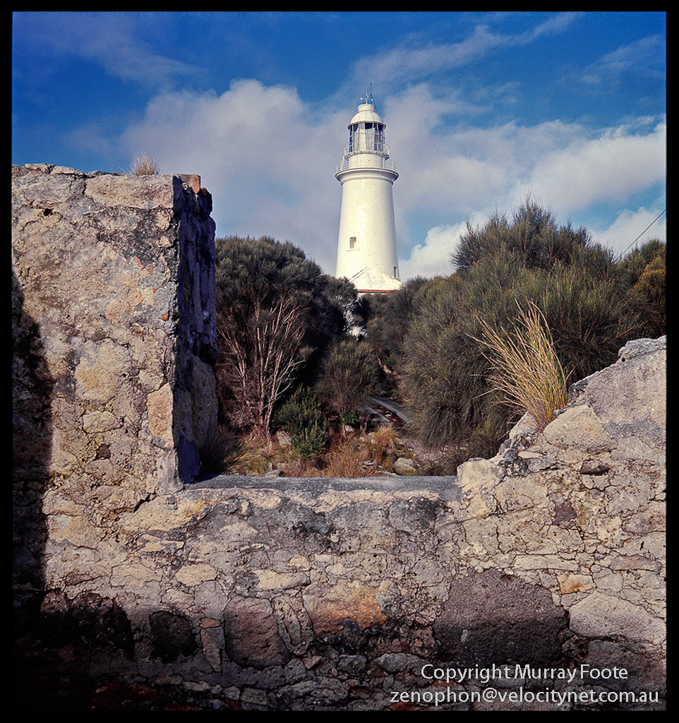 Originally there were two cottages near the lighthouse for assistant lighthouse keepers who at least initially were likely to be convicts. (I think the keepers explained the convict presence when I was there but this was not uncommon for the early lighthouses of Van Diemen’s Land). So here we see the lighthouse from the window of a ruined cottage. The alignment of the window is likely to be no accident so the keepers could look out and check that the light was going. Their location near the top of a hill did also make them occasionally susceptible to bush fires.