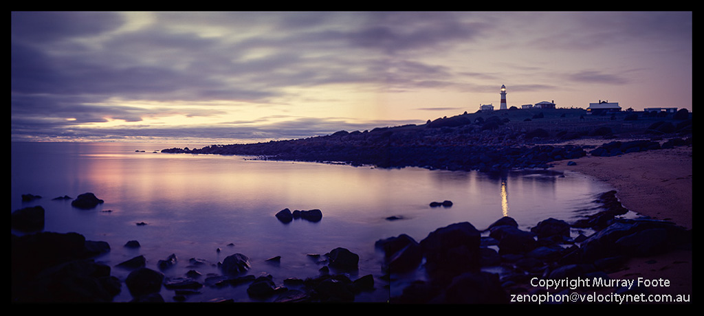 Here is the lighthouse and buildings after sunset. It stands at the head of the Tamar river, the main maritime access to Launceston, the main port in northern Tasmania.