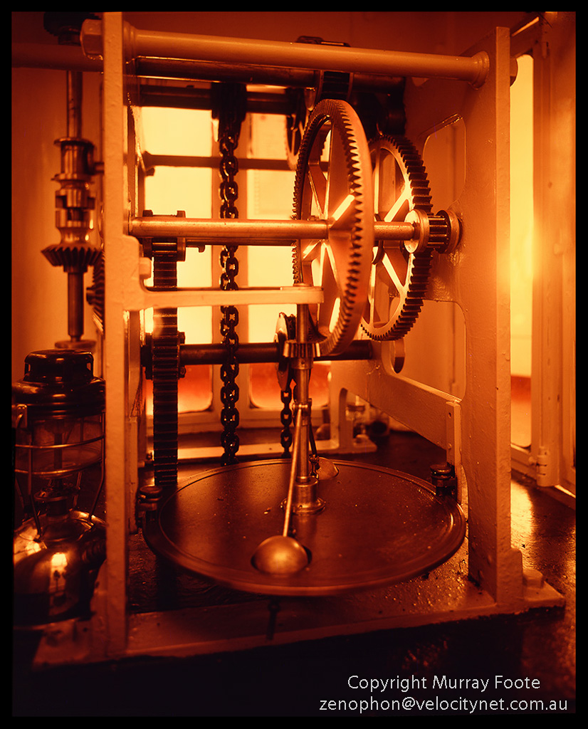 Maatsuyker clockwork mechanism 2:30pm 22 April 1987 Nagaoka Field Camera  90mm Linhof Schneider Angulon f32 15seconds + polariser Fujichrome 50