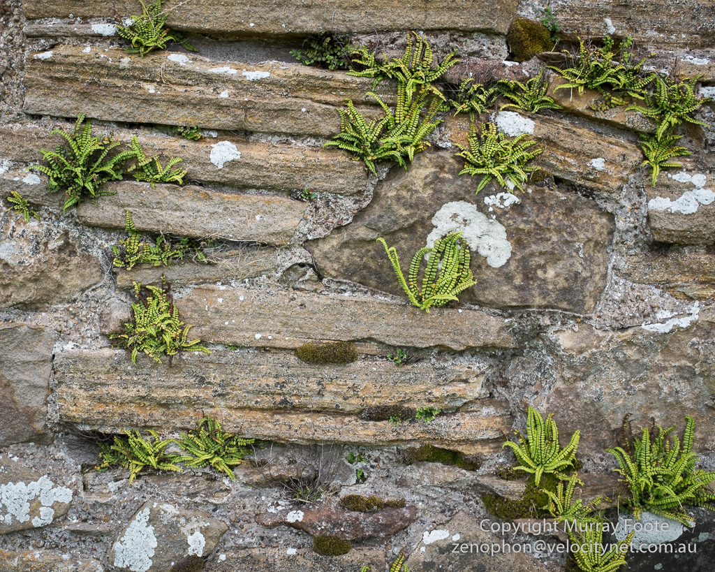 Ferns growing on the castle wall.