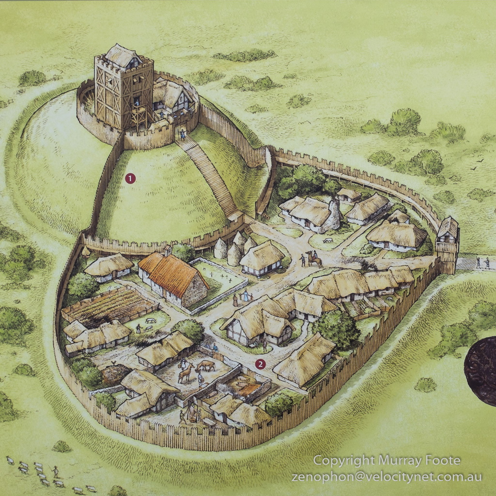 Óengus or Angus, Mormaer or Earl of Moray, grandson of Lulach, son of MacBeth, rebelled against King David I in 1130 and the rebellion was crushed.  This led to the building of the original Duffus Castle by Hugh de Freskyn who received the lands of Óengus.  As shown above, this was a a wooden motte and bailey castle.  The motte is a large raised mound that the castle sits on and the bailey is another raised area for the supporting buildings, but not raised nearly as much.  The bailey comprised “ancillary lodgings and offices, including bakehouse, brewhouse, stables, workshops, perhaps even an outer hall and chapel”.