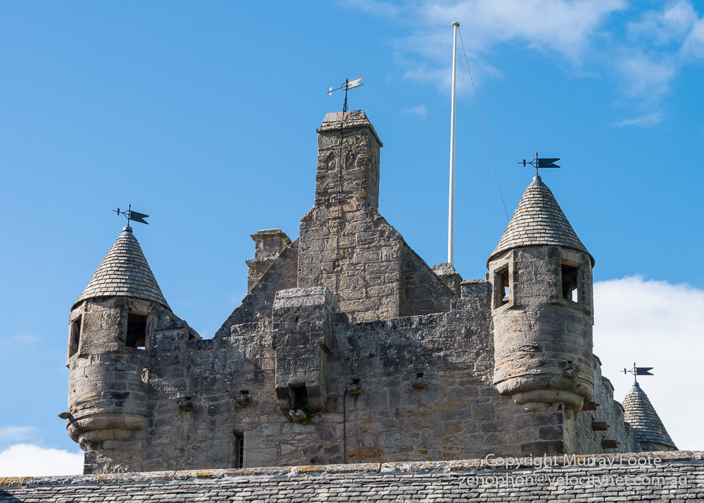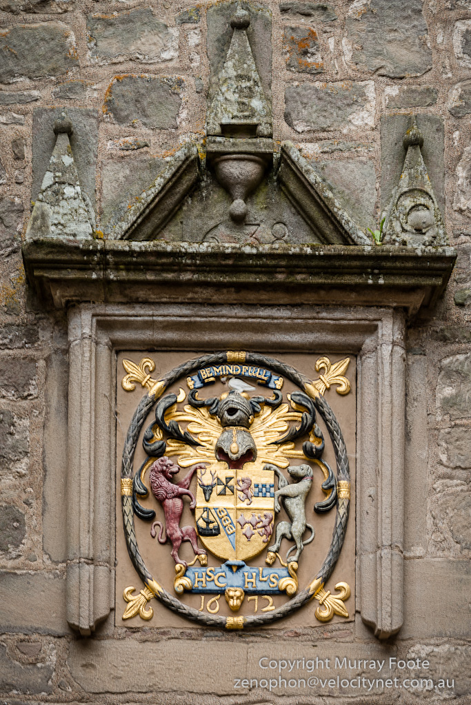 This crest above the main entrance dates from 1672 and includes the family motto “Be Mindful” as well as the initials of Sir Hugh Campbell and his wife Lady Henrietta Stewart.