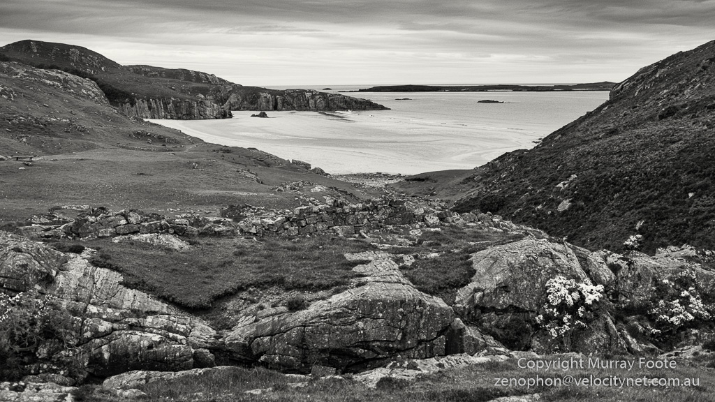 The vicious feudal system in Scotland meant that the big landowners owned everything including houses and fishing boats. This area was owned by the Duke of Sutherland (living in Dunrobin Castle) and a lowland Scot who obtained the leasehold from the Duke in 1810 charged particularly high rents to encourage the development of sheep farming. Most of the local villages disappeared from this pressure and probably from outright evictions over the next decades. In 1841 the inhabitants of Ceannabeinne were told they would have to leave. They successfully resisted for a while and an enquiry was held. However, the enquiry found they effectively had no rights and they were evicted in 1842. Their resistance, though, allowed the inhabitants of the village of Durness to hold out and in 1886 the Crofters Act decreed that landowners could no longer force tenants off their land.