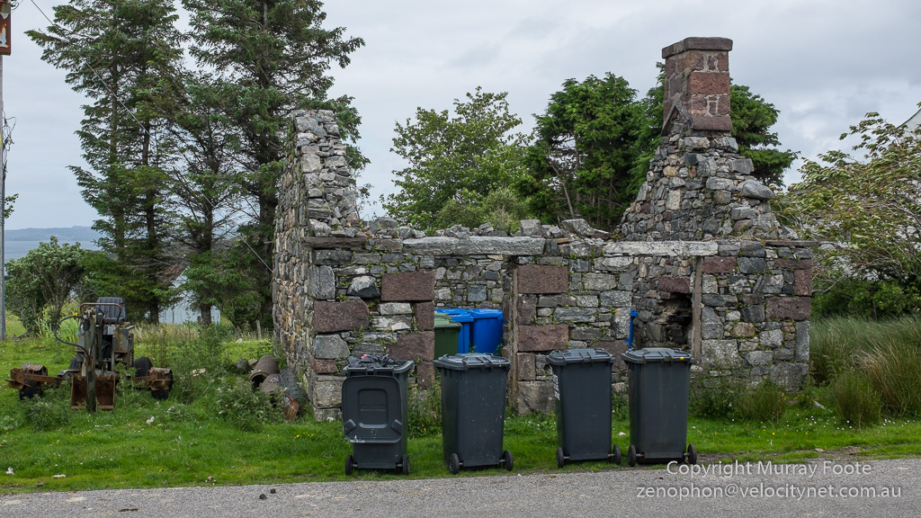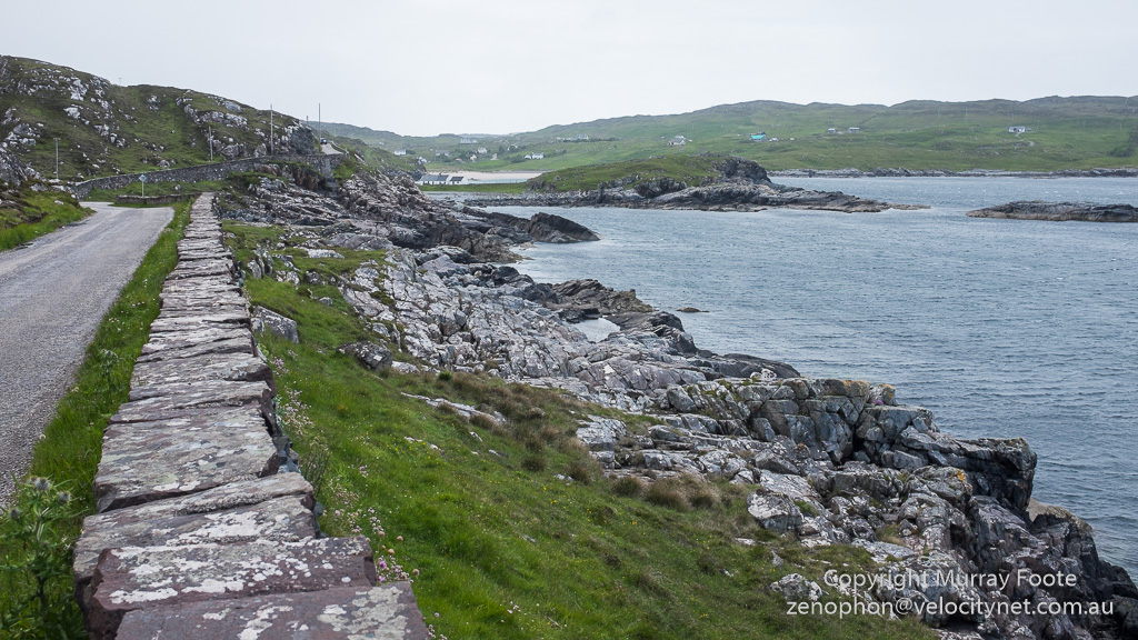 Coming into Culkein. The flat stones beside the road were probably plundered from evicted crofts rather than being cut for the purpose.
