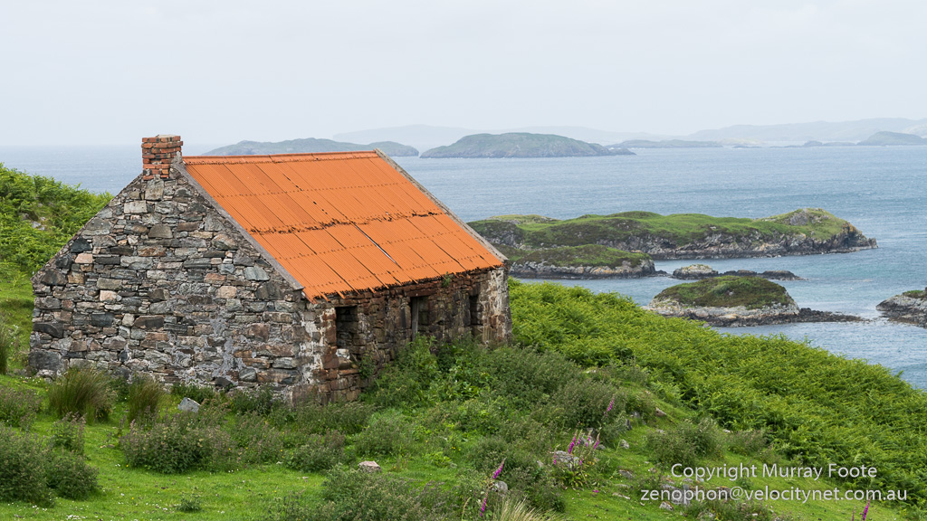 The house of an old croft that presumably relied on the sea for much of their livelihood. 160 families were evicted from Assynt between 1812 and 1823 to create large sheep farms. In the long run these sheep farms did not prove profitable and there is now little evidence of them.