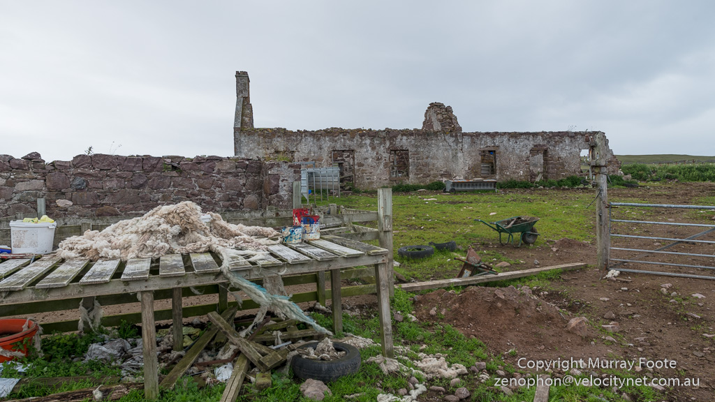 Shearing was evidently underway beside what is probably a ruined farmhouse.
