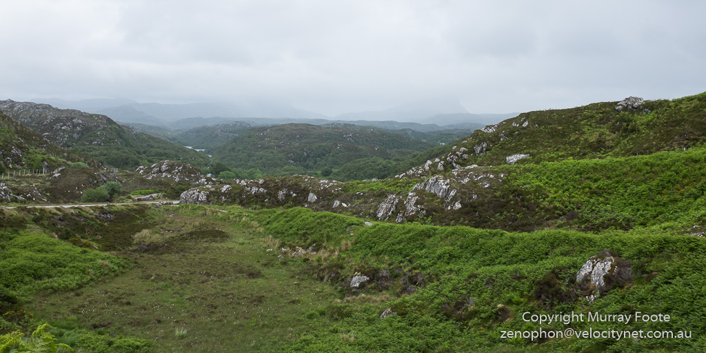 There were many spectacular views but few safe places to stop to take photographs. It was a narrow one-lane road with intermittent passing bays, common in North-West Scotland. This one was particularly windy so you couldn’t see far in front of you on the road. Not a good road for a caravan, especially should you encounter a bus or a truck.