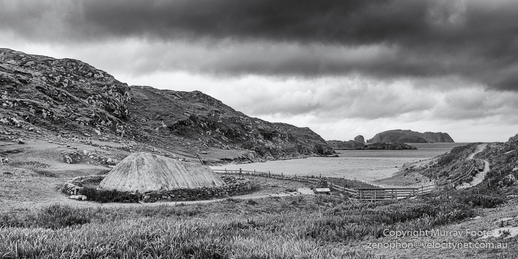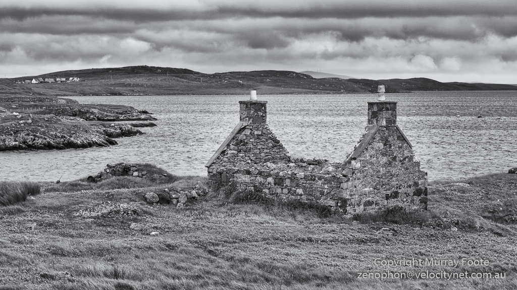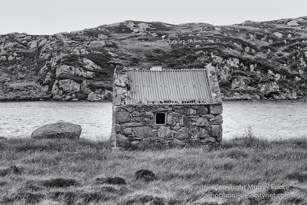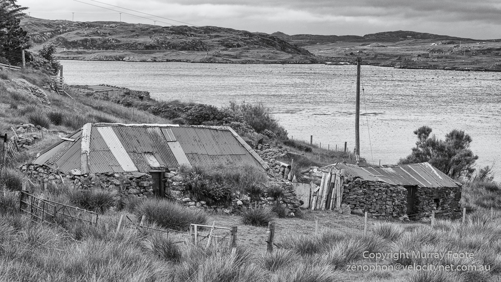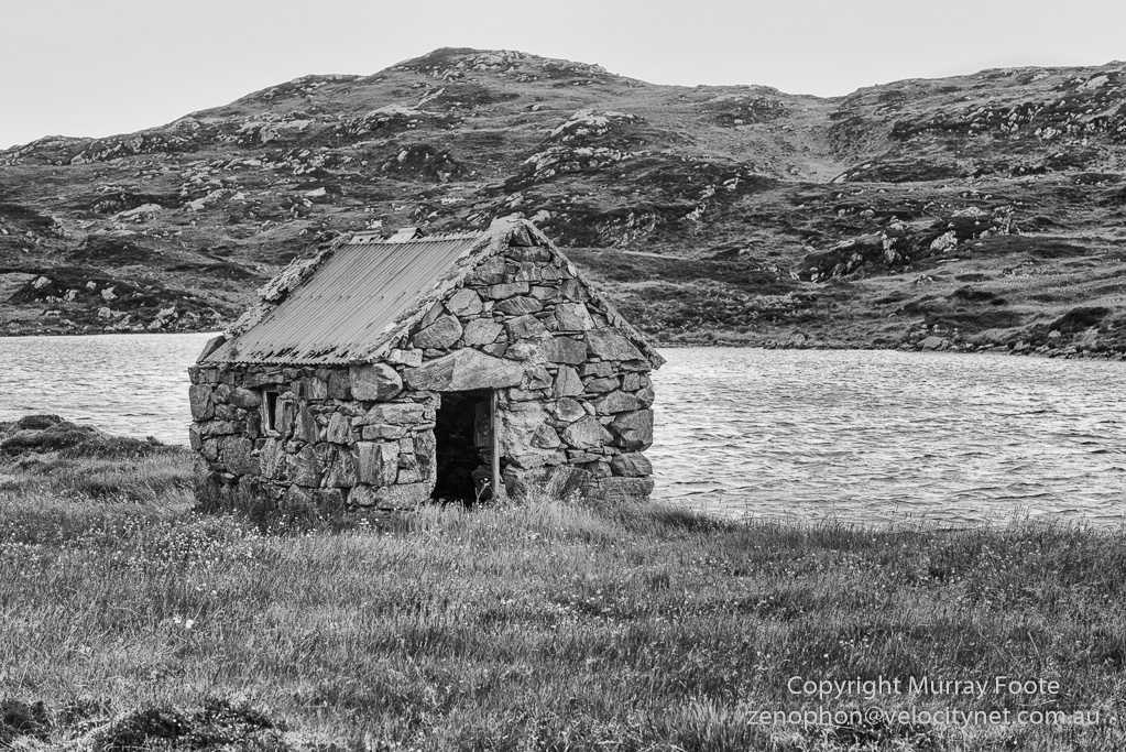 In the mid-afternoon I drove out across the wild and remote island of Great Bernera towards the Bostadh Iron Age House. Here is another dry stone building on a small loch, either Loch Tana, Loch Gea or Loch na Mailne.
