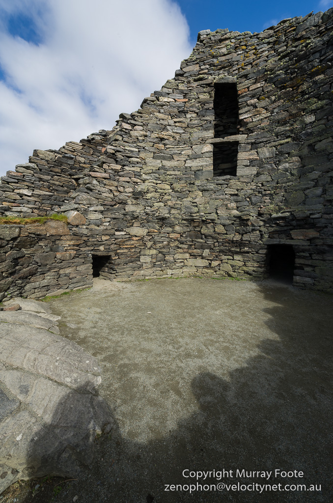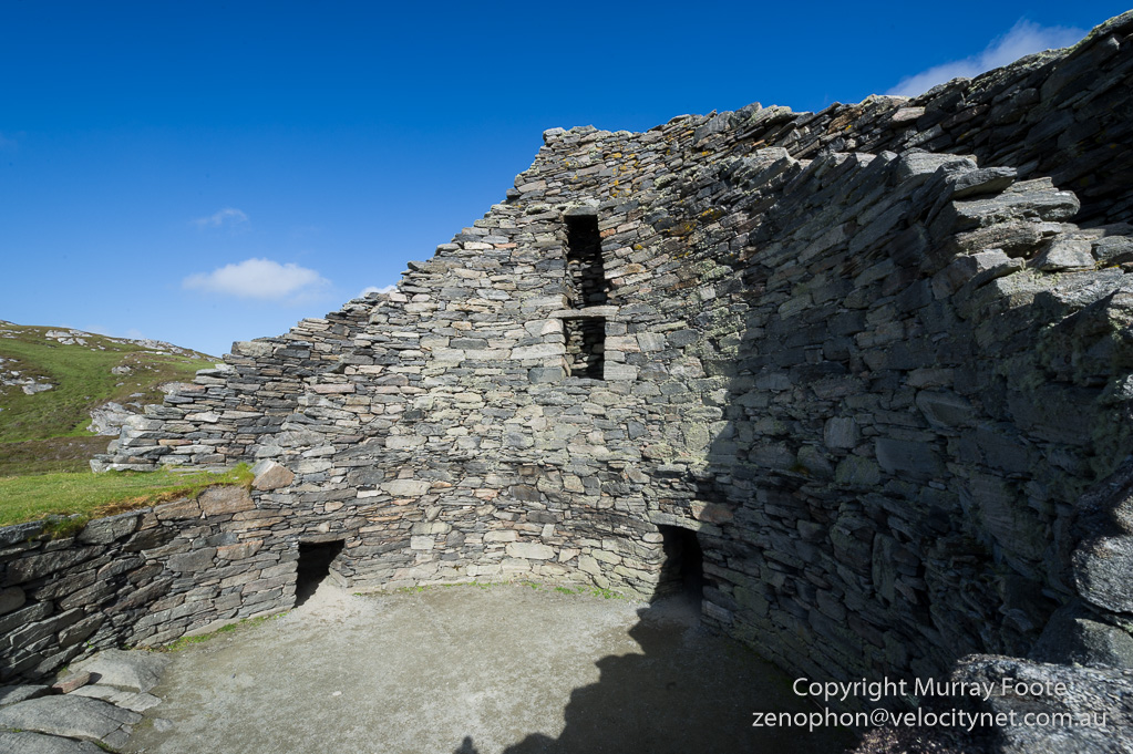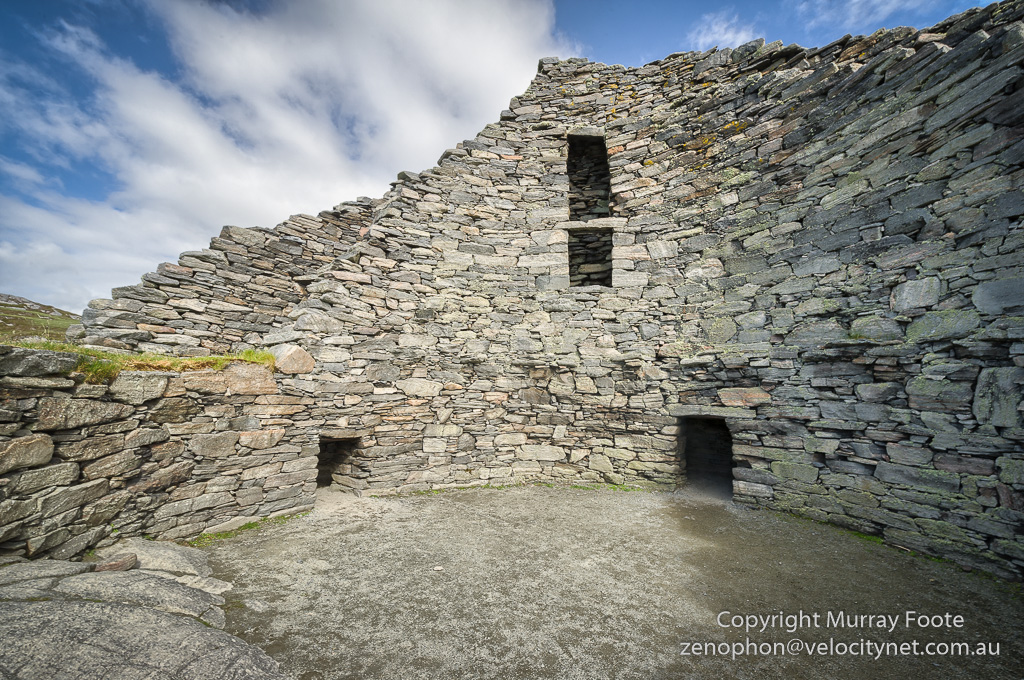The weather had cleared when I returned in the later afternoon.  This is a view that very clearly shows the characteristic double-walled structure of the broch.