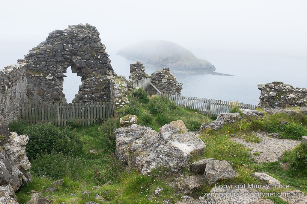 Duntulm Castle through the fog. It is near the northern tip of the Trotternish Peninsula on Skye.