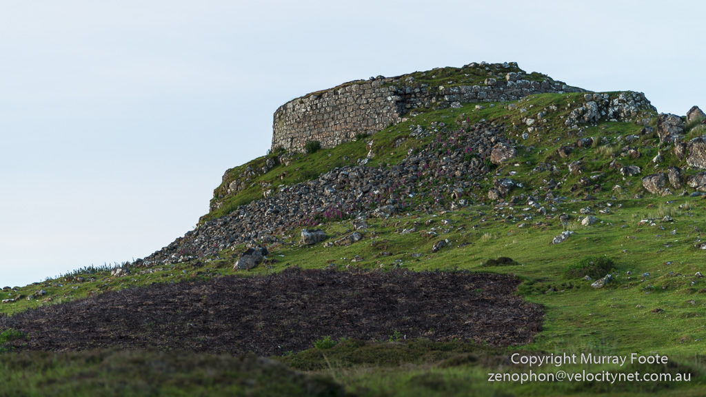 On my way in to Dun Beag, I stopped to take a photograph of the Cuillin Hills. It probably would have worked better an hour or so later with the shadows at a different angle. However, I was at Dun Beag then.