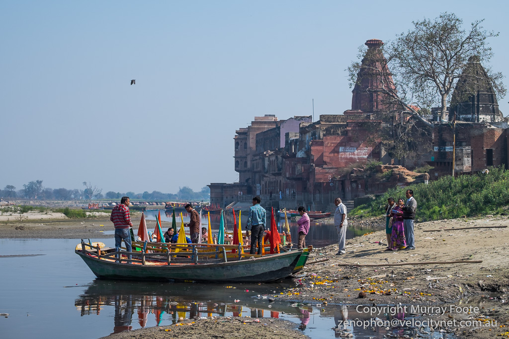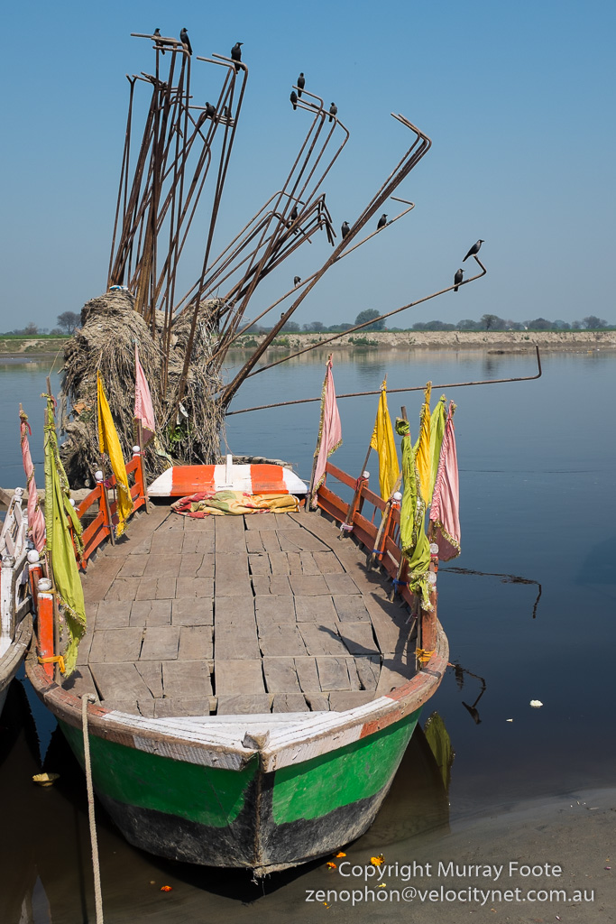 In this last image, what is behind the boat is not a sculpture or a special roosting installation for birds, it is the pylons for a motorway bridge that was to go through the heart of Vrindavan, demolishing the integrity of a cultural heritage area.  This was only stopped following concerted local objections.