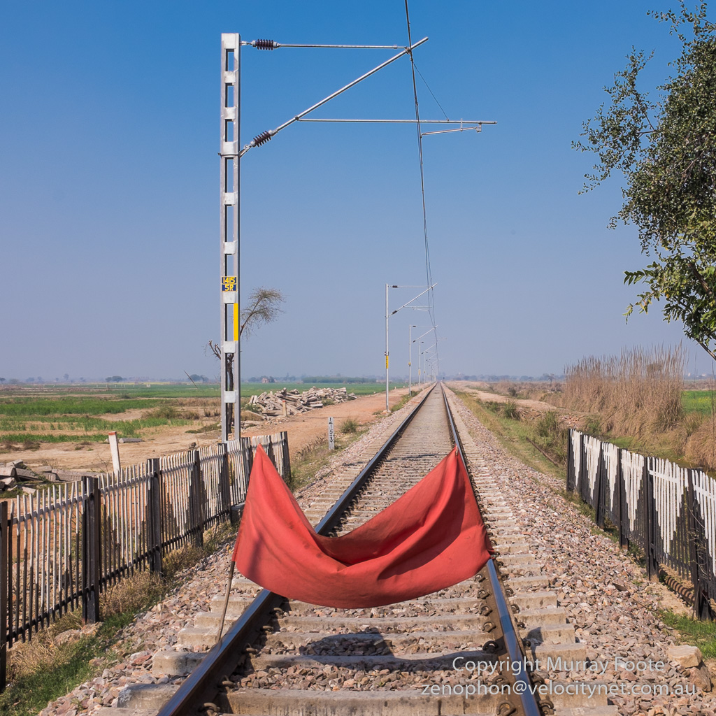 Low-tech traffic signals for trains, it would seem. This is taken from the bus on an unregulated crossing and I presume that all trains are expected to stop to ensure no accidents.