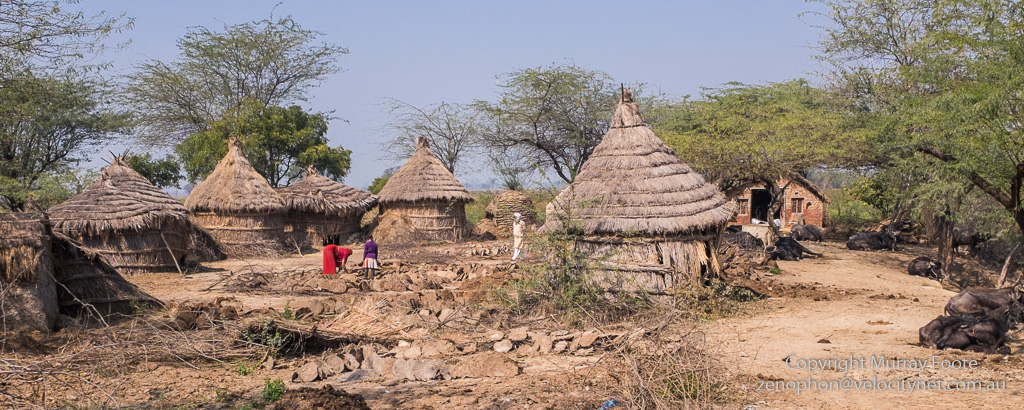 A village scene flashing by as we drive past. All the huts would be for storage.