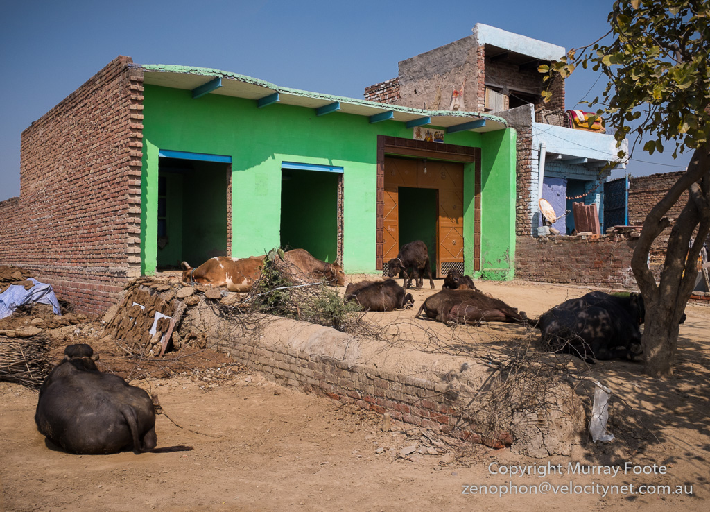 For the last two, we are on our way on the bus again. I understand these cattle are just lounging around in the sun, rather than being outside their own house in a village where cattle have property rights.